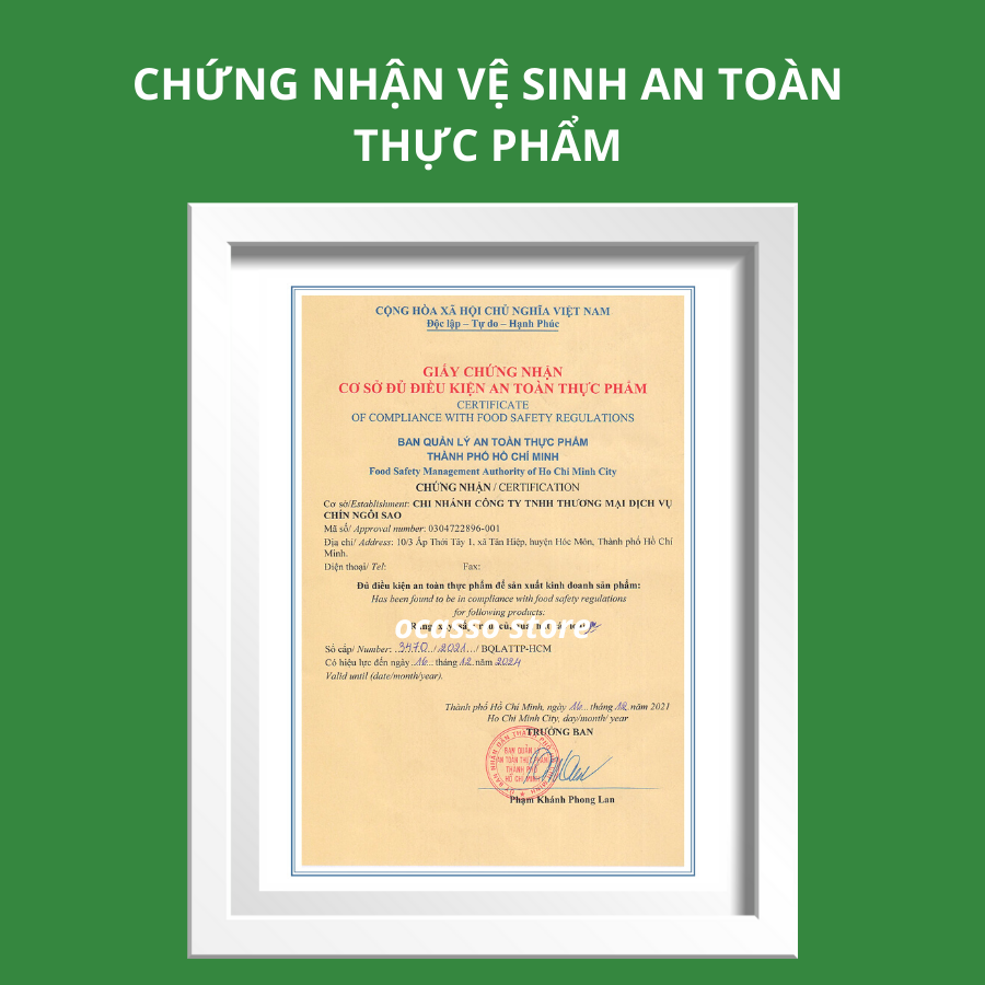 - Được sản xuất theo quy trình khép kín trực tiếp tại hệ thống nhà xưởng của Công Ty Chín Ngôi Sao. Đạt tiêu chuẩn Vệ Sinh An Toàn Thực Phẩm. Đáp ứng tất cả các nhu cầu phân phối trong nước và xuất khẩu.