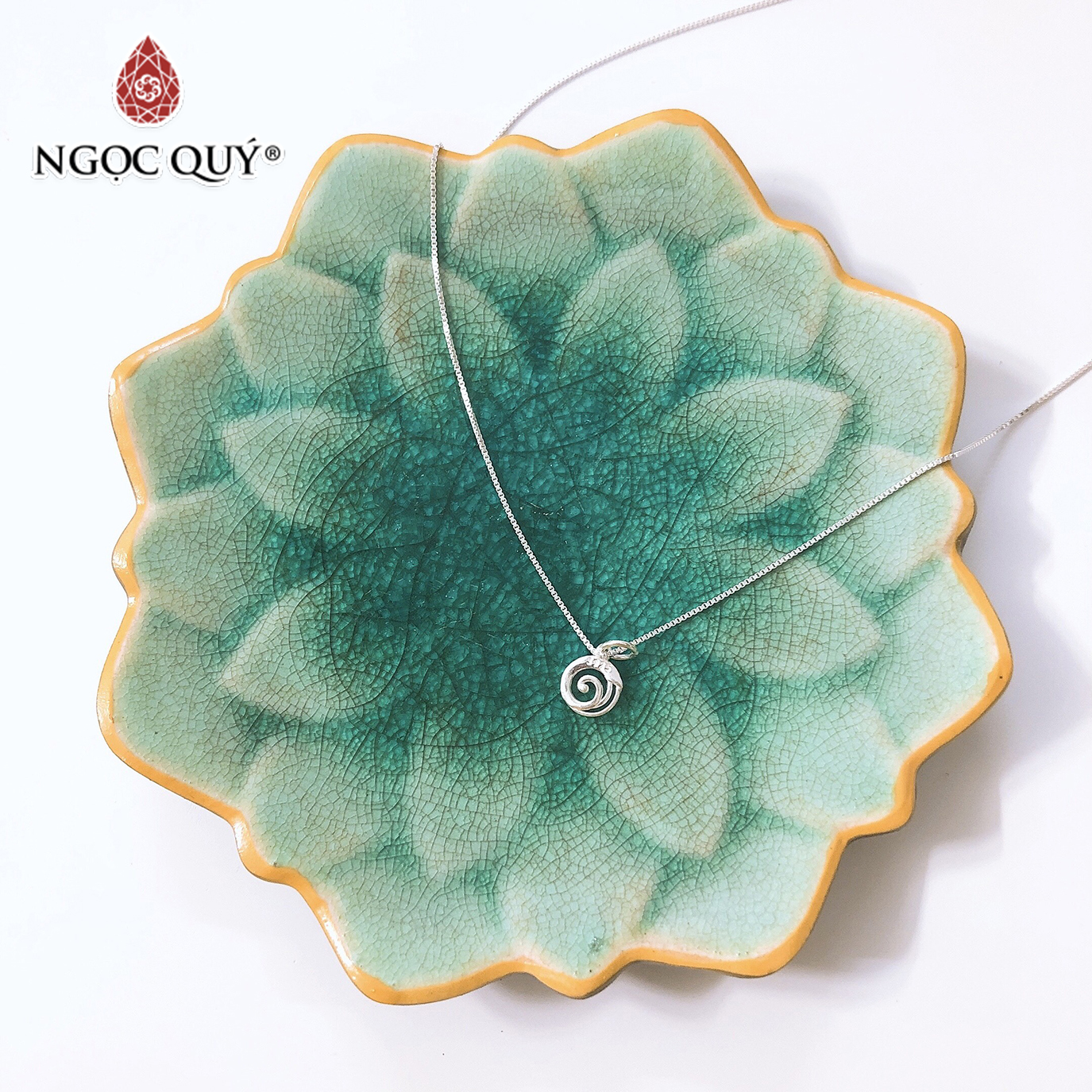 Dây chuyền bạc mặt xoắn ốc làm bằng bạc chất lượng cao .Để làm mới sản phẩm dùng lâu ngày, chỉ cần dùng xà phòng hoặc ngâm trong nước kem đánh răng sẽ đẹp lại như mới ( bạc xi hoặc bạc không đạt chất lượng thì sẽ ko có tính chất này )