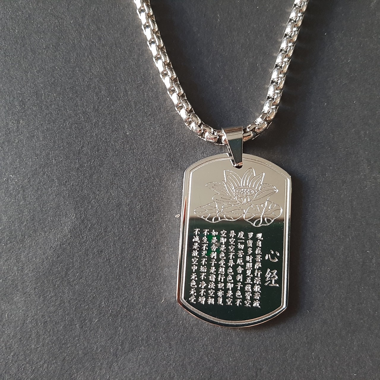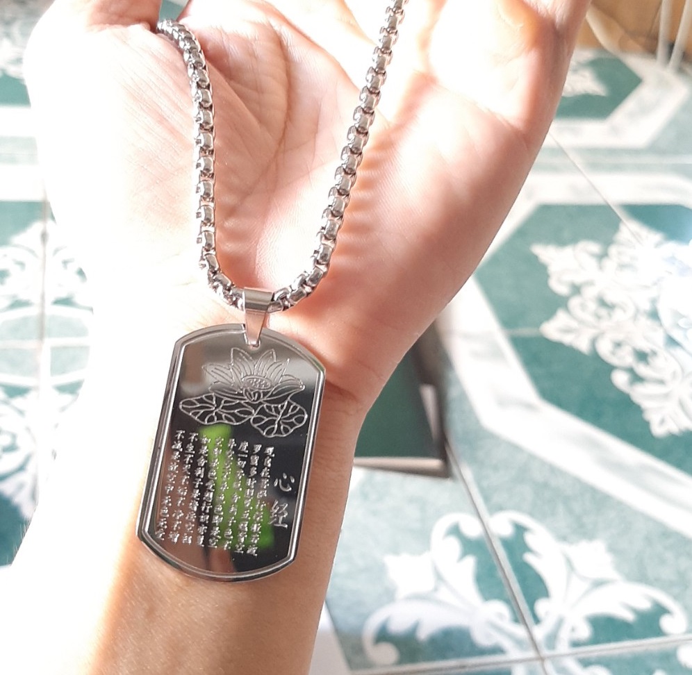 Mặt dây chuyền: inox vĩnh viễn không đen khắc lazer bát nhã tâm kinh
