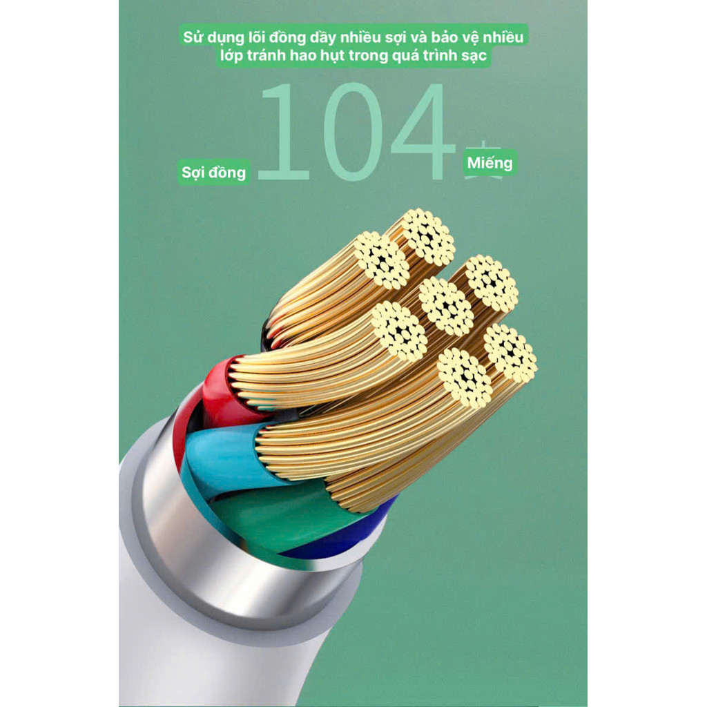 Hỗ trợ sạc nhanh PD/ QC 3.0 . Cáp vải dù, đầu kim loại siêu bền Chất liệu bề mặt: NYLON Chất liệu: Vỏ nhôm + TPE + Dây nylon bện chất lượng cao Màu