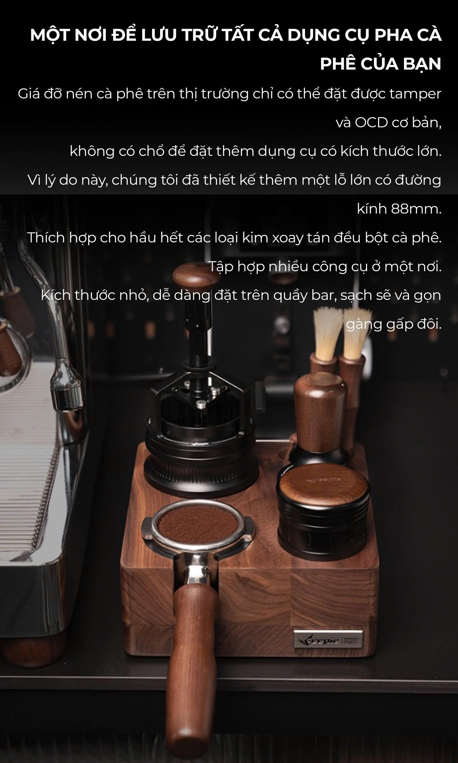 ĐẾ NÉN CÀ PHÊ GỖ ÓC CHÓ NAM MỸ – SỰ LỰA CHỌN HOÀN HẢO CHO BARISTA CHUYÊN NGHIỆP Bạn đang tìm kiếm đế nén cà phê vừa sang trọng, chắc chắn, vừa hỗ trợ