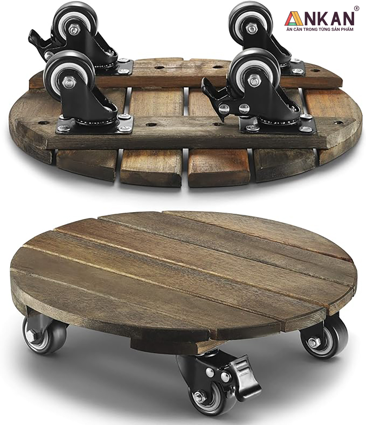 ✨Đế Lót Chậu Cây Có Bánh Xe Cao Cấp ANKAN Hình Tròn Màu Xám Đen R30Cm Tải trọng 150 Kg Gỗ Tràm Bông