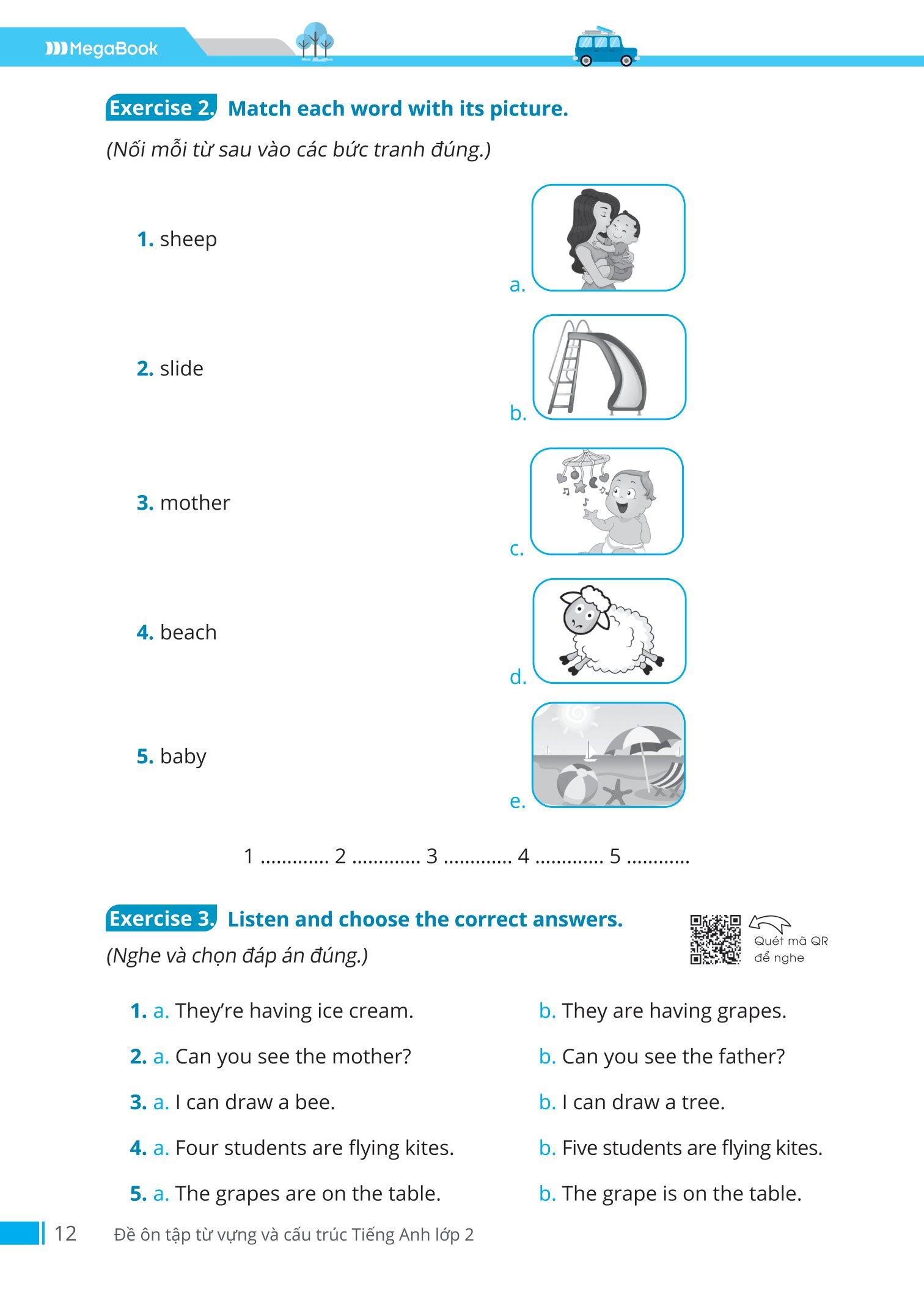 - Lời giải và đáp án chi tiết, rõ ràng Lời giải chi tiết, rõ ràng giúp các em có thể dễ dàng đối chiếu và kiểm tra kết quả, từ đó đánh giá năng lực làm bài và xây dựng kế hoạch học tập phù hợp. Megabook mong rằng, đây sẽ là cuốn sách bổ ích, hỗ trợ đắc lực cho các con trên con đường chinh phục môn tiếng Anh, cả về kiến thức ngữ pháp và luyện tập thực hành, để từ đó có thể hình thành phản xạ ngôn ngữ, giúp các con tự tin sử dụng môn ngoại ngữ này.