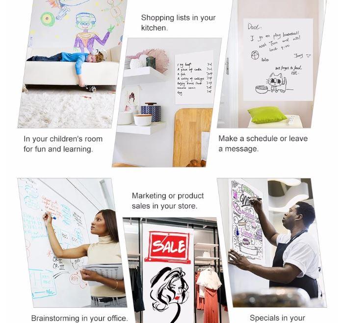 BẢNG DÁN TƯỜNG BẰNG NHỰA PVC LOẠI 120X200CM Làm bằng vật liệu nhựa PVC 120x200cm , dày 0.16mm; Dễ dàng lắp đặt, chỉ cần bóc lớp phủ keo dính phía sau, dán lên tường hay