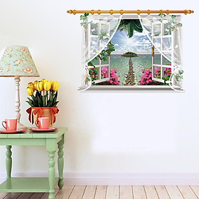 ✨Decal dán tường nguyên miếng cửa sổ hoa đào có rèm SK9020F