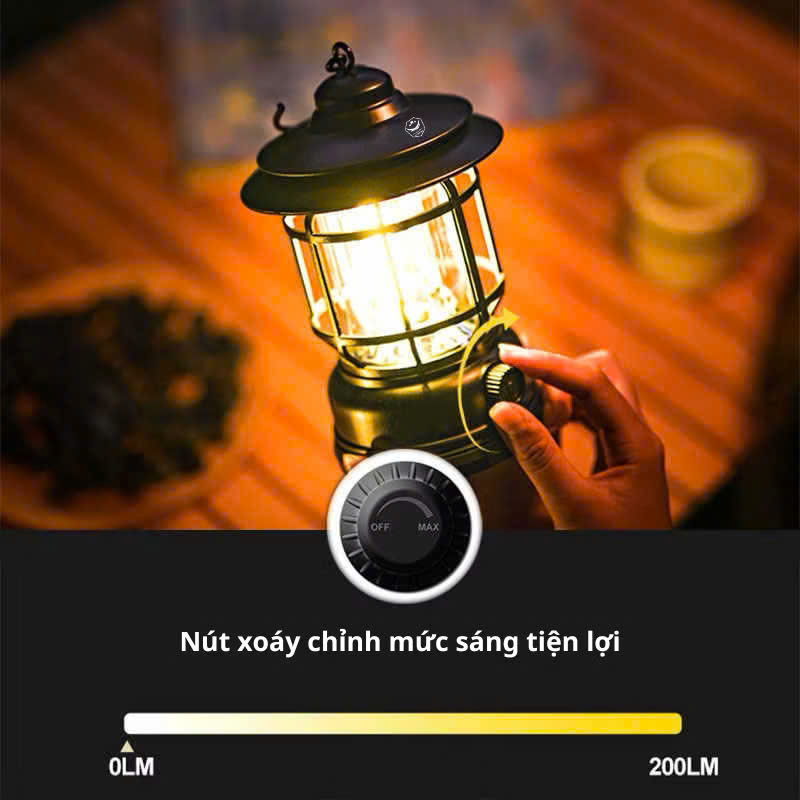 Đèn măng xông cắm trại dã ngoại du lịch dùng pin sạc tích điện 1200mah ánh sáng vàng#dentichdien