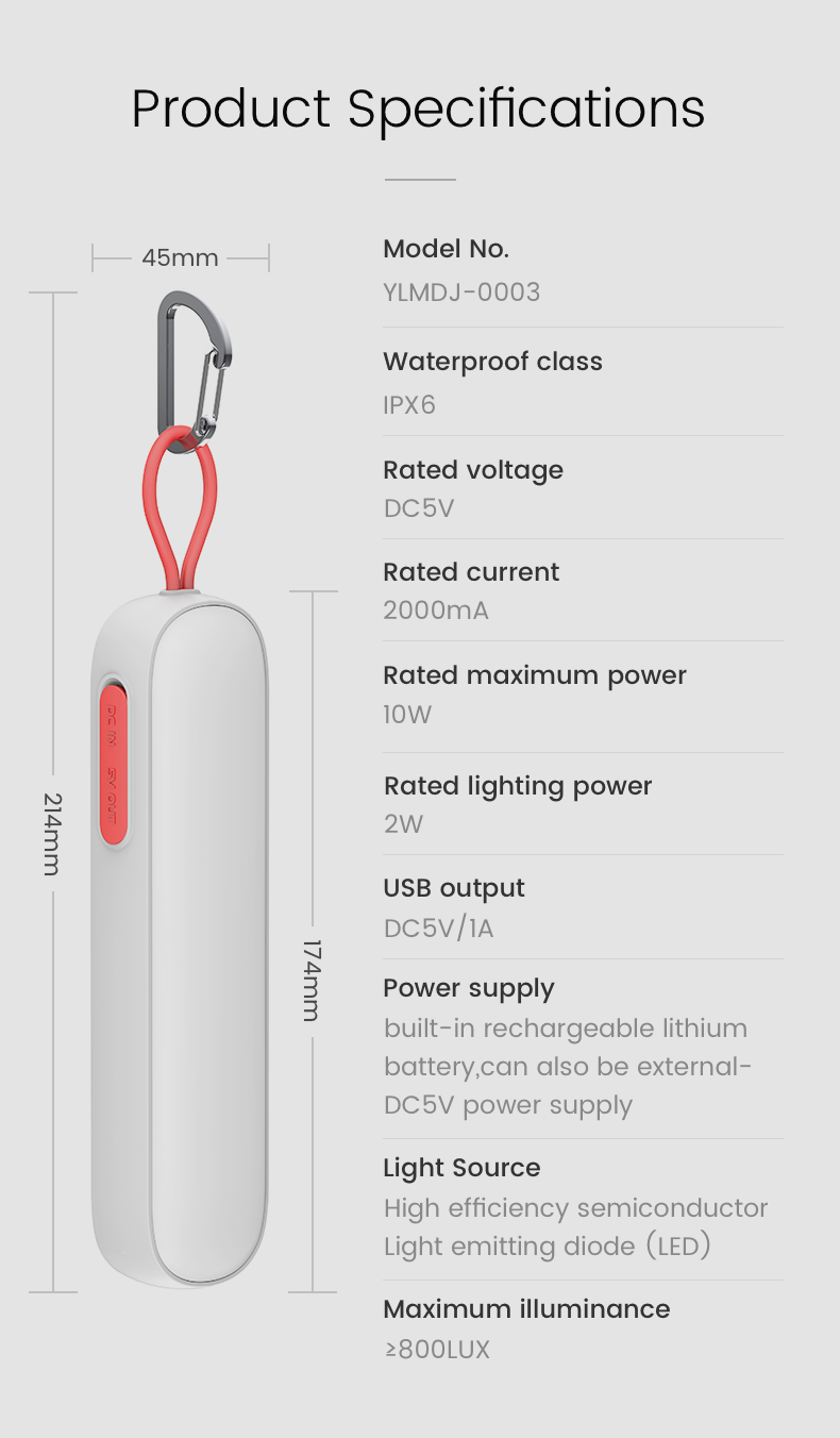 Về tuổi thọ pin, chiếc đèn dã ngoại đa năng được tích hợp viên pin lithium dung lượng lớn vô cùng di động và có thể được sạc lại qua cổng Type-C khá phổ biến hoặc cắm trực tiếp nguồn DC5V để sử dụng, tùy vào mục đích. Đặc biệt, thiết kế đầu ra USB còn giúp chiếc đèn cắm trại có thể được sử dụng để làm nguồn điện di động khẩn cấp, sạc pin cho điện thoại và các thiết bị khác.