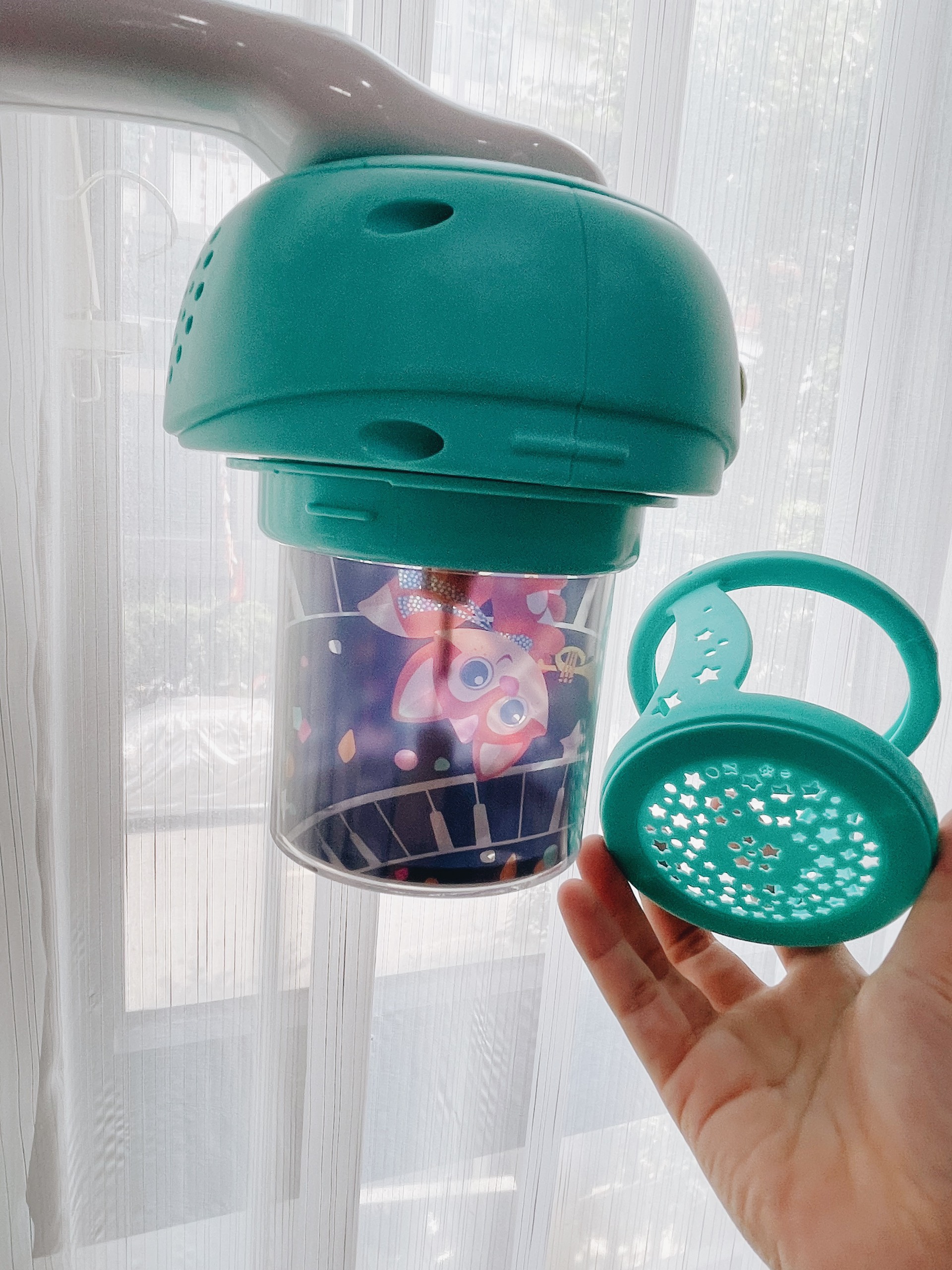 - Chuyển thành đèn ngủ, đèn chiếu bóng với luồng sáng nhẹ hình các bạn động vật dễ thương