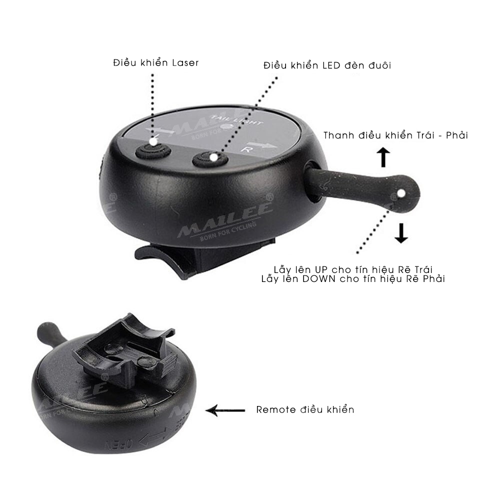 - Đèn xi nhan xe đạp - Đèn LED tín hiệu điều khiển từ xa gắn đuôi xe đạp - lắp đặt dễ dàng - - Điều khiển từ xa không dây, dễ sử dụng,