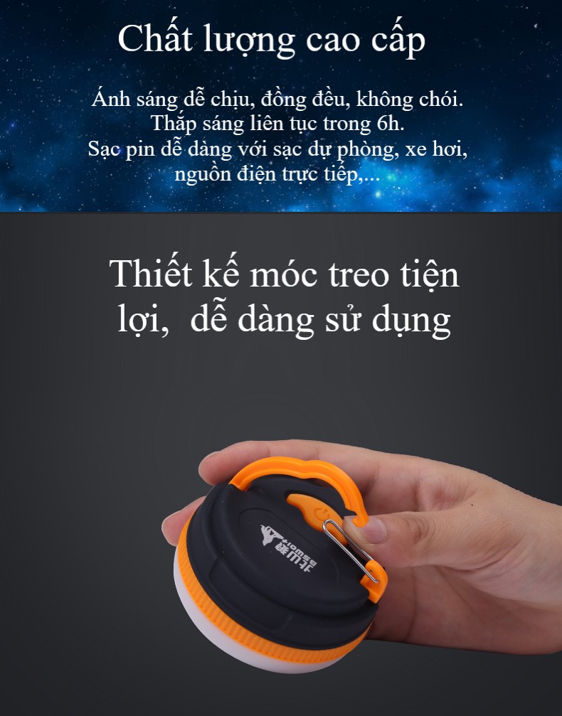 Đèn Cắm Trại Dã Ngoại Du Lịch Sạc USB 1200mAh, Ánh Sáng Vàng Trang Trí Đèn cắm trại dã ngoại du lịch dùng pin sạc USB tích điện 1200mAh là giải pháp lý tưởng để