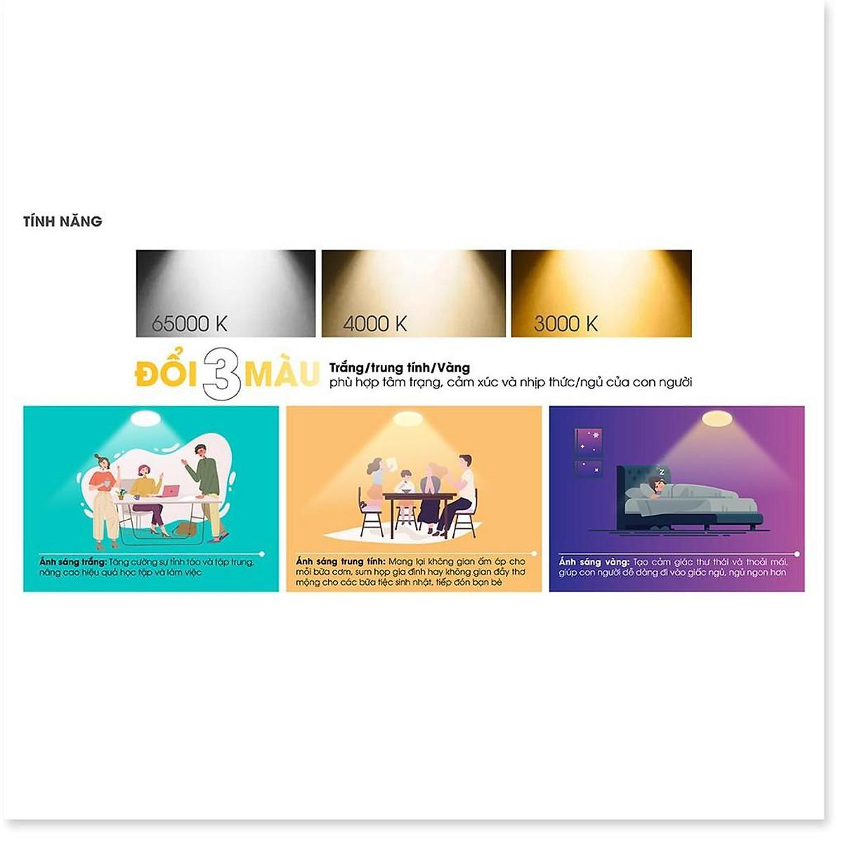 Công suất: 12W Điện áp: 220V/50Hz Quang thông: 930lm/910lm Nhiệt độ màu: 6500K/3000K Kích thước (ØxH): (138x50)mm ĐK lỗ khoét trần: 110mm - Sử dụng Chip LED Samsung đạt độ tin cậy cao - Chất