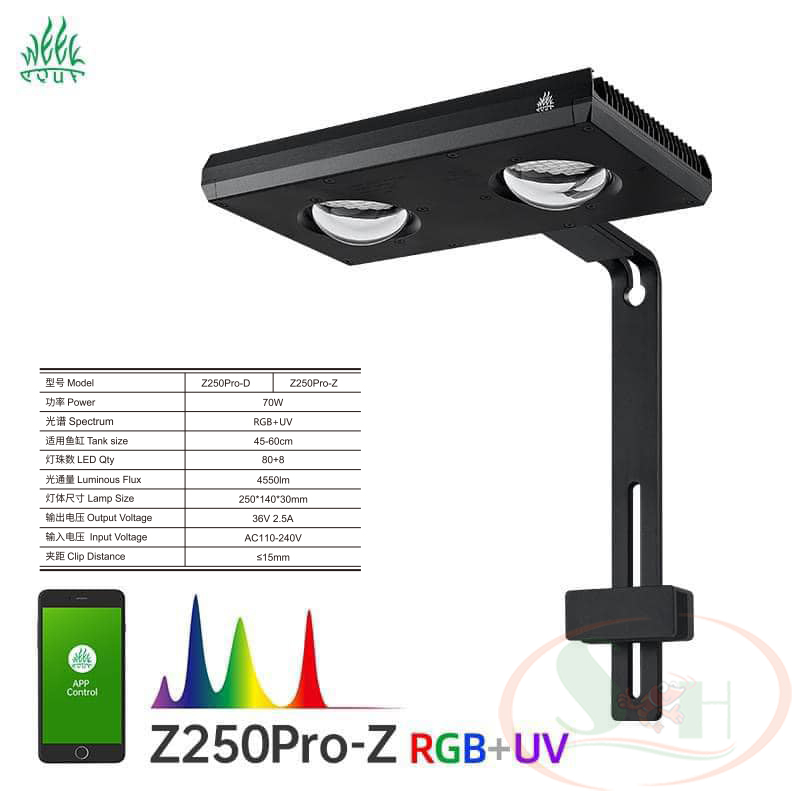 Đèn led Week Aqua Z series Z200, Z250, Z400 Pro được nâng cấp thiết kế với nhiều khe rãnh giúp cho khả năng tản nhiệt của đèn đạt hiệu quả cao. Week Z Pro series sử dụng mắt led cao cấp RGB-UV tích hợp kèm chóa giúp gom sáng và tối ưu lượng ánh sáng vào bể.
