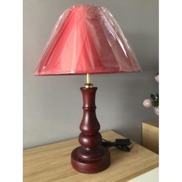 ✨Đèn ngủ để bàn gỗ tiện tinh xảo, chao vải đỏ thời thượng Khôi Nguyễn - B 065 DT