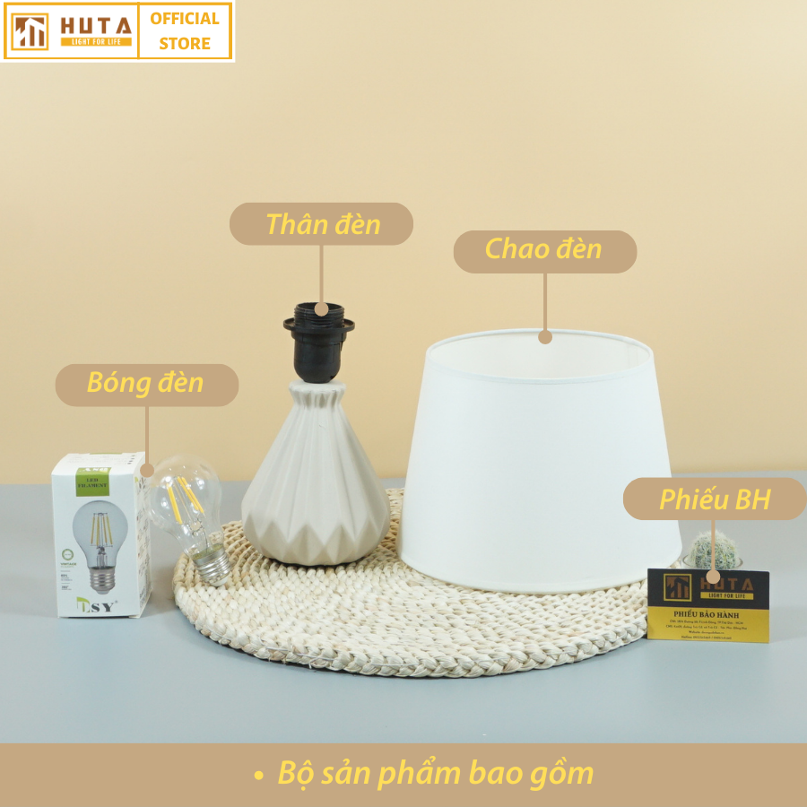 Đèn Ngủ Gốm Sứ HUTA Light For Life S13 Decor Phòng Ngủ, Điều Chỉnh Độ Sáng, Bóng Led Sáng Vàng Tiết Kiệm Điện ️CHẾ ĐỘ BẢO HÀNH - 1 đổi 1 MIỄN PHÍ trong 30