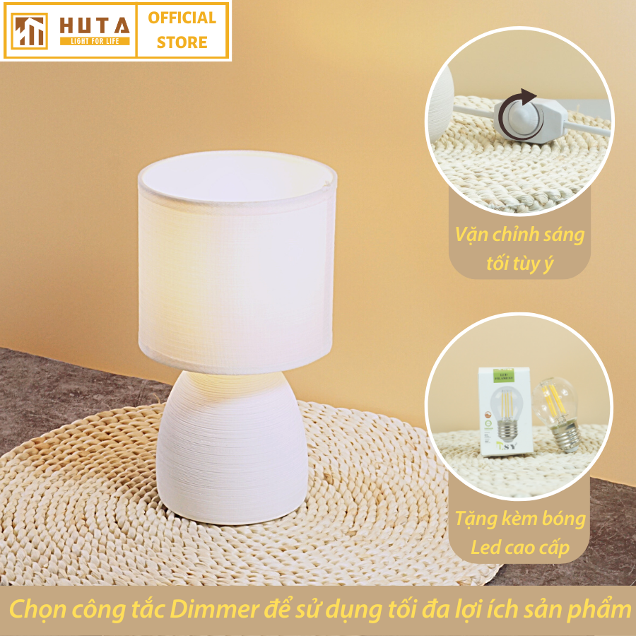 Đèn ngủ để bàn HUTA S2 được làm thủ công từ loại đất nung mịn chắc tạo nên nét trang nhã, dùng để trang trí phòng ngủ, đọc sách đầu giường hay để bàn phòng khách, bàn ăn, kệ tường. Có thể điều chỉnh độ sáng phù hợp với không gian, vừa tăng tính thẩm mỹ vừa tiết kiệm điện.
