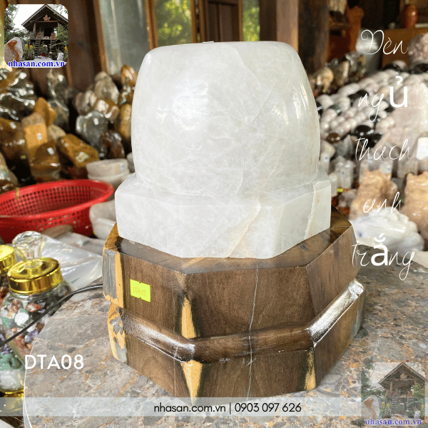- Xuất xứ: Nhà Sàn Tây Nguyên Việt Nam Công dụng của đèn ngủ thạch anh trắng DTA08 - Đèn ngủ thạch anh trắng DTA08 là vật dụng trang trí lý tưởng cho phòng ngủ, phòng khách, phòng thờ,