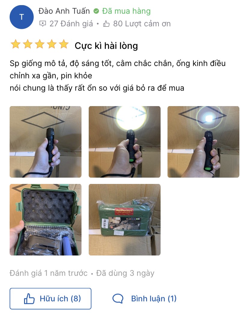 Chế Độ Sáng: 5 chế độ (Mạnh-Vừa-Yếu-Chớp-SOS)