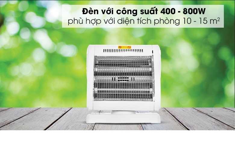 - Tự động ngắt điện khi quạt bị nghiêng hay đổ Đèn Sưởi Điện 2 Bóng Halogen 800W Xoay 90 Độ - Hàng Chính Hãng là một trong những thiết bị sưởi ấm không thể thiếu tại gia đình trong mùa đông. Sản phẩm sử dụng đèn Halogen, tỏa nhiệt đều, làm ấm nhanh, không gây khó thở và khô da, đảm bảo an toàn cho người sử dụng. Kiểu dáng sang trọng, hiện đại Đèn Sưởi Điện 2 Bóng Halogen 800W Xoay 90 Độ - Hàng Chính Hãng có thiết kế sang trọng hơn, kiểu dáng hiện đại và bắt mắt, nhỏ gọn tiết kiệm diện tích và phù hợp mọi không gian như phòng khách, phòng ngủ, Điều khiển dễ dàng bằng nút xoay Đèn Sưởi Điện 2 Bóng Halogen 800W Xoay 90 Độ - Hàng Chính Hãng có 3 mức công suất 400W, 800W điều chỉnh bằng núm vặn linh hoạt theo 2 chiều giúp bạn dễ dàng lựa chọn được mức nhiệt phù hợp với môi trường và nhu cầu sử dụng. Chắc chắn, bền đẹp, an toàn Đèn Sưởi Điện 2 Bóng Halogen 800W Xoay 90 Độ - Hàng Chính Hãng có chân đế vững chãi, lưới bảo vệ, tránh gây bỏng cho người dùng. Đặc biệt, lồng và vỏ nhựa phía sau chống cháy tuyệt đối, lưới tản nhiệt giúp sản phẩm không bị hư hỏng do quá nóng. TỎA NHIỆT ĐỀU, KHÔNG GÂY KHÔ DA Làm ấm cực nhanh, không gây khô da Đèn Sưởi Điện 2 Bóng Halogen 800W Xoay 90 Độ - Hàng Chính Hãng sử dụng đèn halogen, làm ấm cực nhanh, độ bền vượt trội, chống chói mắt hiệu quả và không đốt cháy oxy nên không gây khó thở hay khô da khi dùng. Quay đảo chiều, tỏa nhiệt đều khắp phòng Sản phẩm có khả năng quay đảo chiều liên tục, giúp tỏa nhiệt đều khắp phòng, rất thích hợp khi sử dụng tại không gian rộng như phòng khách hoặc phòng có nhiều người. An toàn với người sử dụng Đèn Sưởi Điện 2 Bóng Halogen 800W Xoay 90 Độ - Hàng Chính Hãng có chế độ tự động ngắt điện khi bị nghiêng đổ và hoạt động trở lại bình thường trở lại trạng thái an toàn. Thông số kỹ thuật