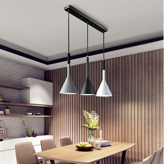 Ray đèn bằng kim loại sơn tĩnh điện, choá đèn bằng nhôm hình phễu có tác dụng hội tụ ánh sáng cao ,thường được sử dụng vào vị trí bàn ăn,
