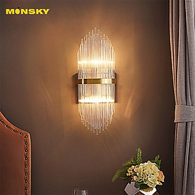 Đèn tường pha lê là loại đèn được thiết kế rất tinh xảo với sự kết nối hài hoà giữa các thanh pha lê với nhau và sự phản chiếu ánh sáng của đèn led