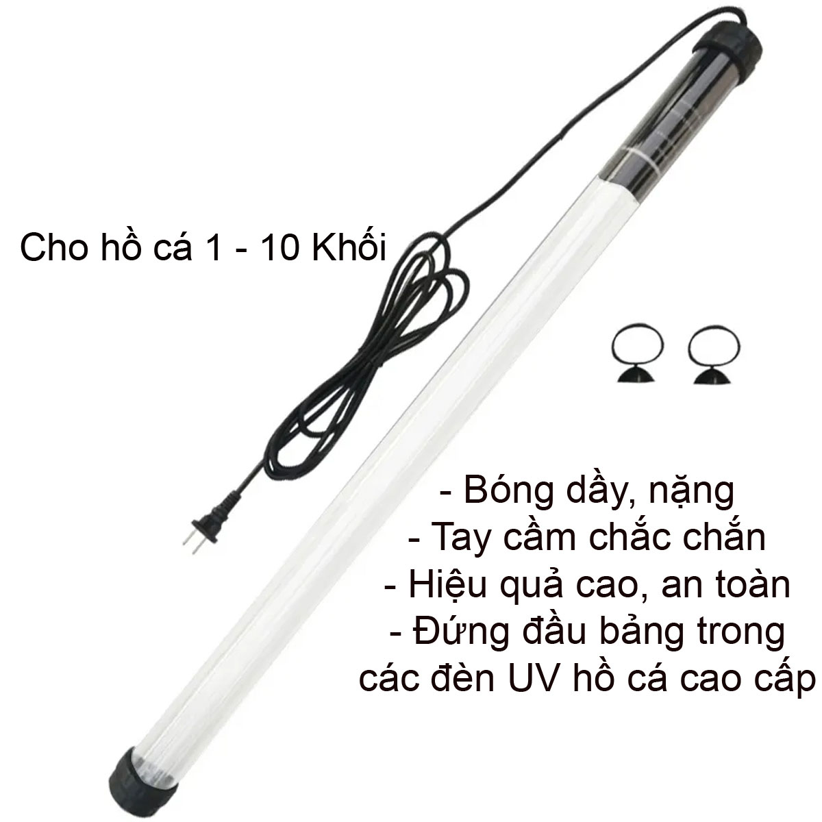 Công suất: 6W Nguồn 220V- 50HZ/60HZ Sử dụng tia UVC, ống thủy tinh thạch cao truyền tải tia cực tím tốt. Công dụng: Diệt rêu, nấm, diệt khuẩn nước (bể cá),ngăn tảo sinh trưởng. Cách