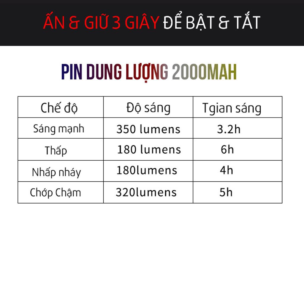 - Đèn pin xe đạp 300lm 6000k 3 chế độ sáng được thiết kế nhằm giúp đảm bảo an toàn cho người sử dụng xe đạp vào buổi tối và là phiên bản cao cấp