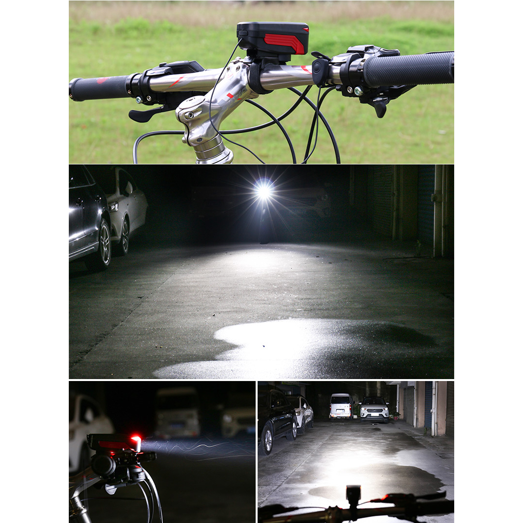 Đèn Pha Xe Đạp Siêu Sáng Cảm Biến Ánh Sáng Kèm Còi