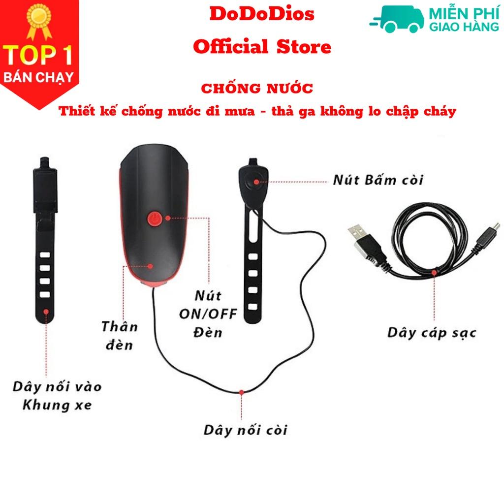 combo Đèn xe đạp thể thao siêu sáng có còi pin sạc chống nước Chính hãng dododios