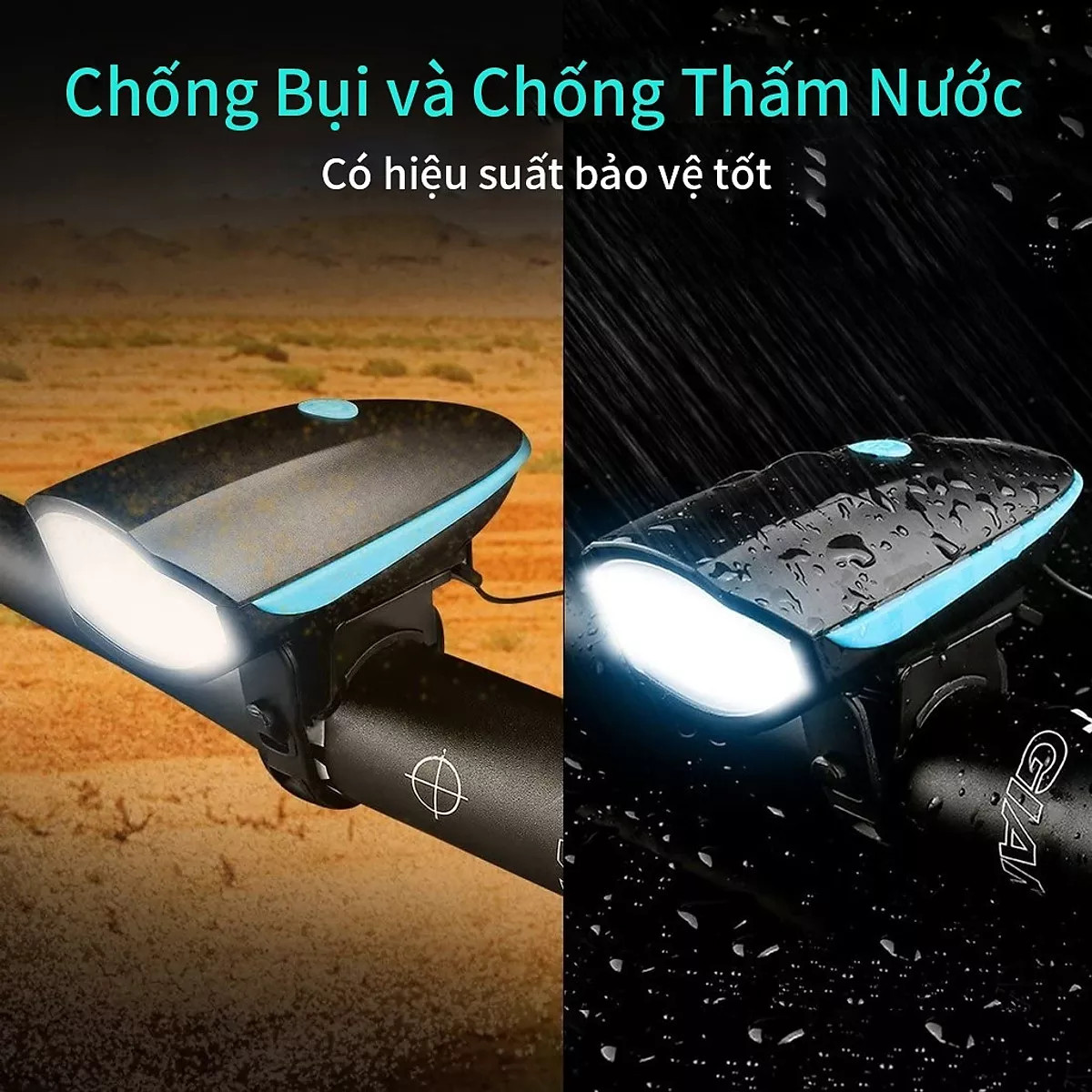 Đèn LED Xe Đạp Năng Lượng Mặt Trời Kèm Còi, Đèn Xe đạp Sạc bằng Năng Lượng Mặt Trời - USB Đèn Xe Đạp có Chuông Còi, Đèn Pin Xe Đạp chống nước có 3
