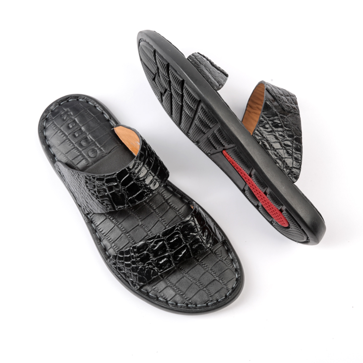 - Dép nam Huy Hoàng được làm từ chất liệu da cá sấu cao cấp nên càng sử dụng lâu bề mặt sẽ càng bóng đẹp tự nhiên. Da cá sấu mềm mại sẽ hạn