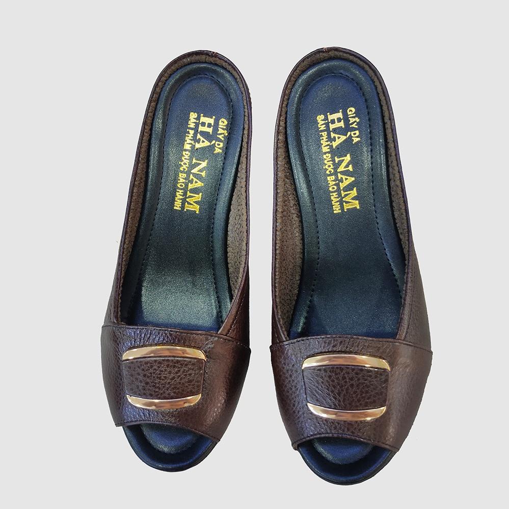 Dép nữ đế xuồng 5cm da bò thật