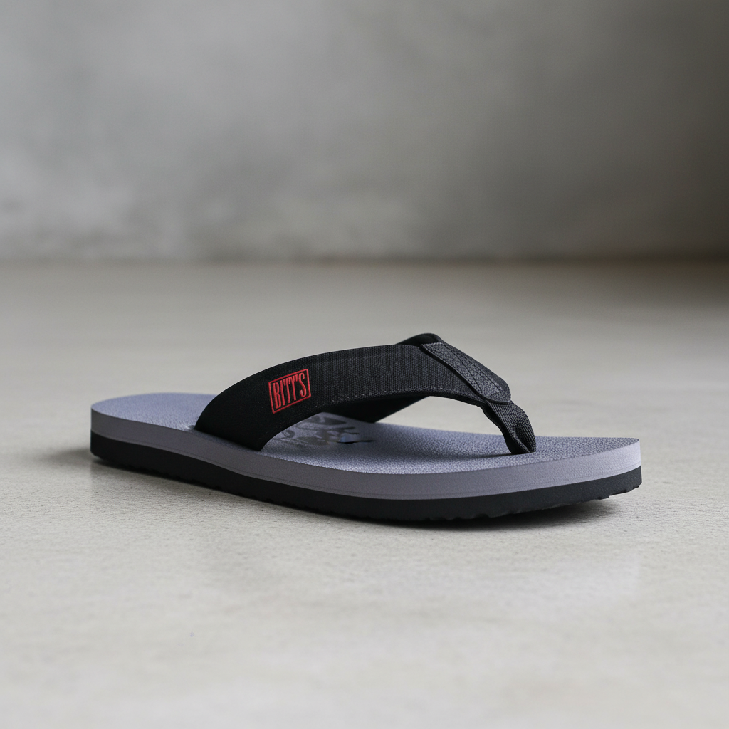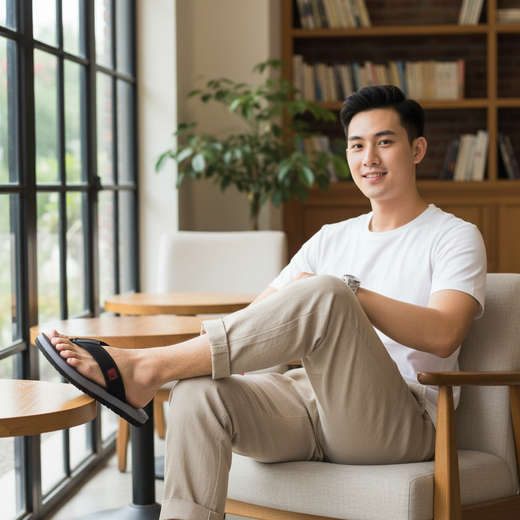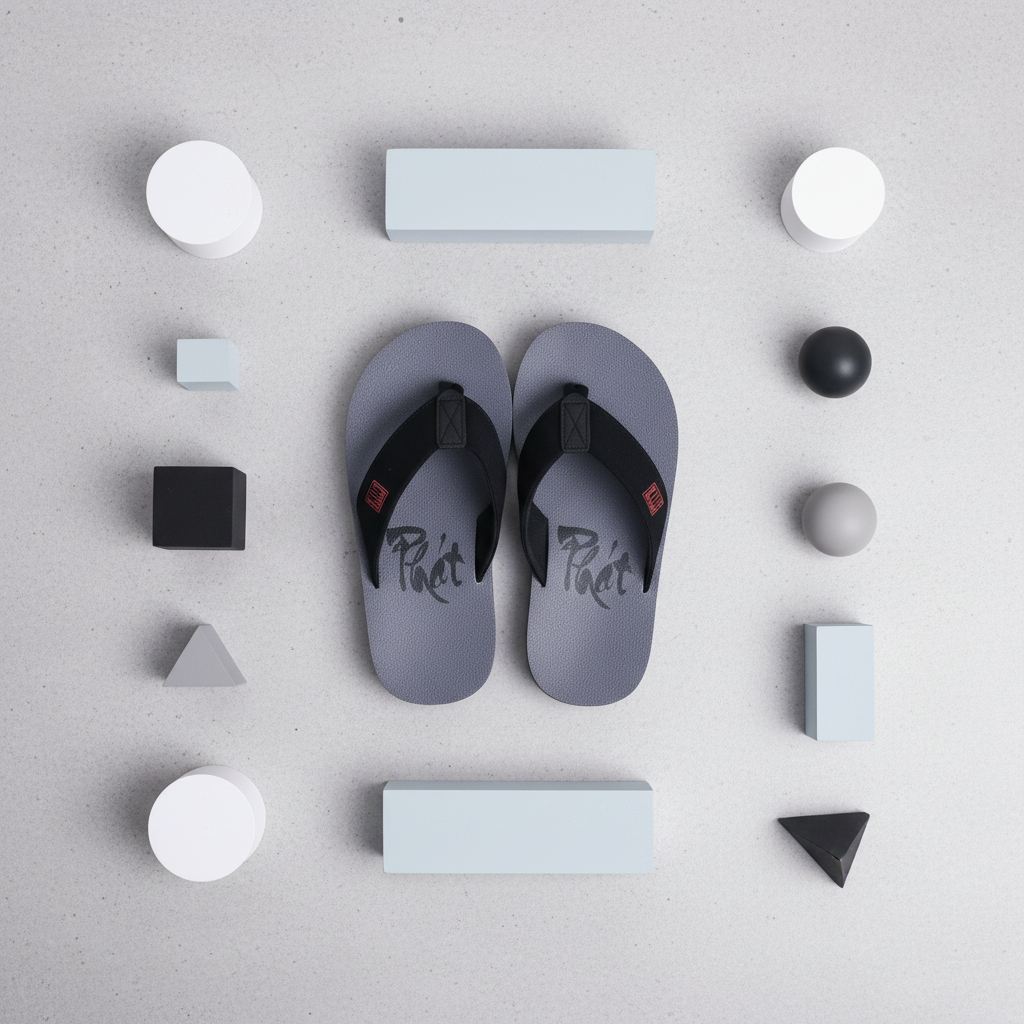 Đế dép bằng cao su tổng hợp, chống trơn trượt.