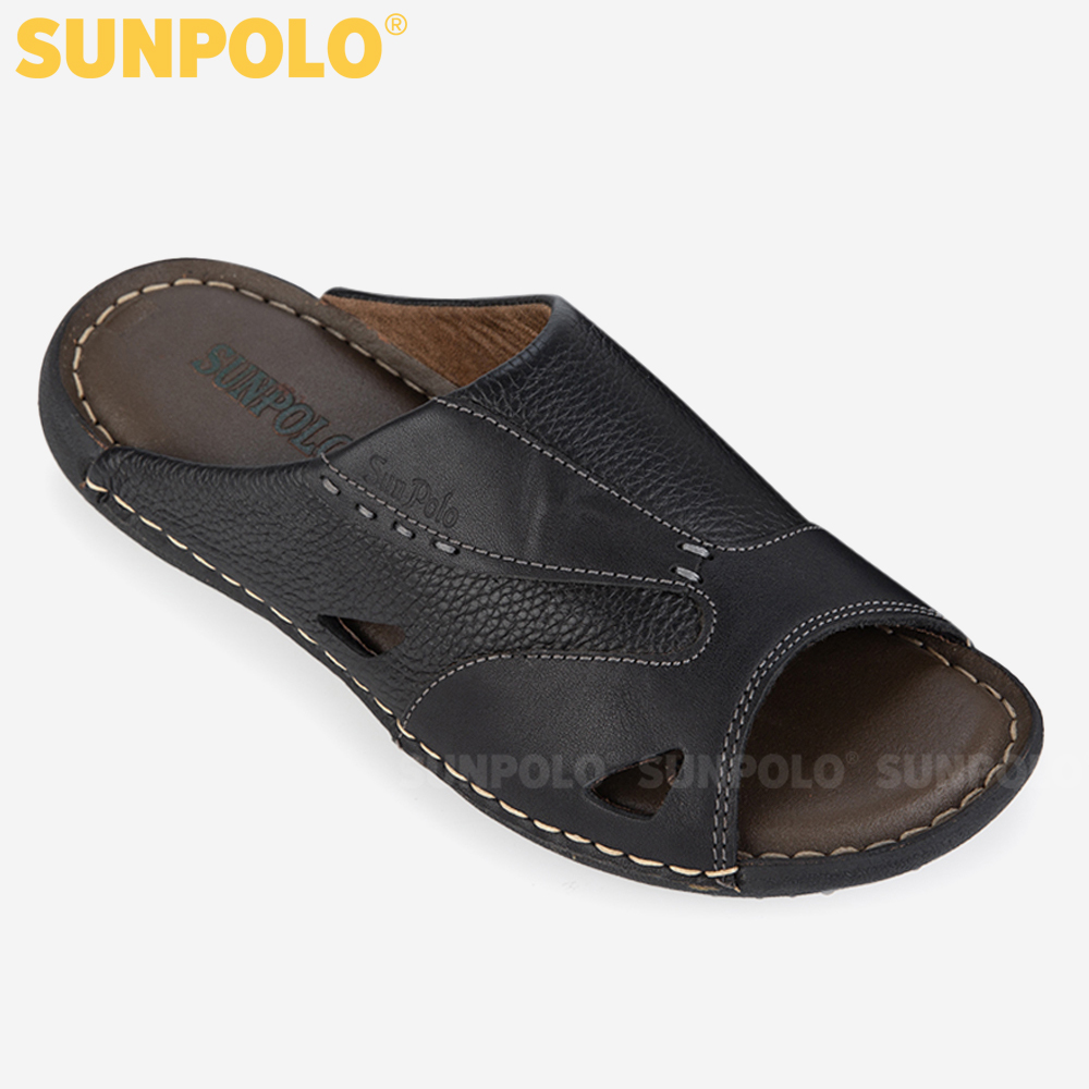 ✨Dép Quai Ngang Nam Da Bò SUNPOLO SQND32 (Đen)