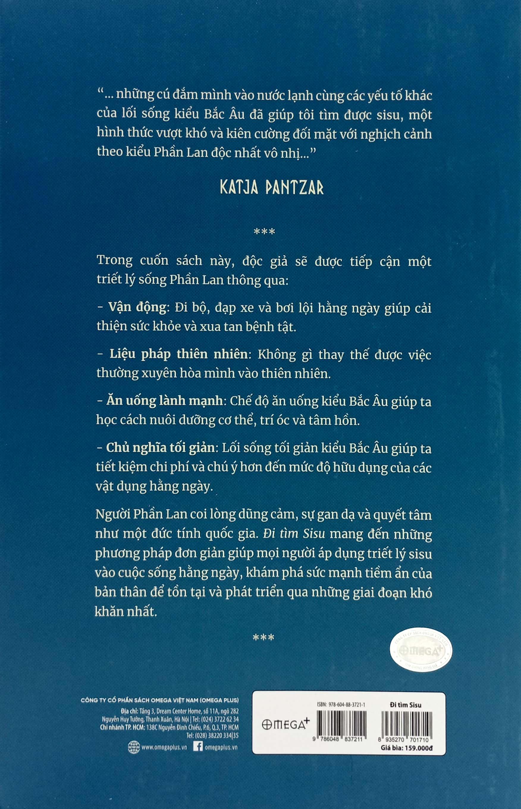 Mua tại TiktokĐi Tìm Sisu - Triết Lý Phần Lan Trong Hành Trình Kiếm Tìm Lòng Dũng Cảm, Sức Mạnh và Hạnh Phúc Sisu – hình thức vượt khó và kiên cường đối mặt với nghịch cảnh độc nhất vô nhị của người Phần Lan. Trong Đi tìm Sisu, tác giả Katja Pantzar viết về những trải nghiệm thực tế của bản thân trong quá trình tìm kiếm sisu của chính m.ình. Sisu là triết lý của người Phần Lan, nhấn mạnh vào đức tính kiên cường và khả năng vượt qua nghịch cảnh. Trong sách, tác giả giới thiệu và đưa ra lời khuyên cá nhân về một số hoạt động giúp rèn luyện sisu đồng thời cải thiện sức khỏe và đời sống tinh thần: