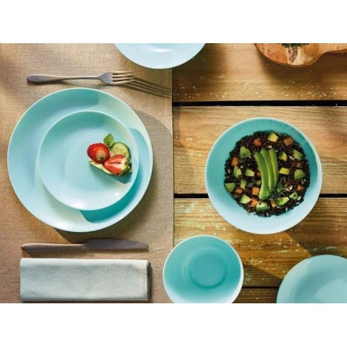 Bộ 6 chén bát đĩa thủy tinh Luminarc P9203 – Xanh dương (Light Blue) Mô tả sản phẩm: Bộ chén bát đĩa thủy tinh trắng Luminarc mang kiểu dáng sang trọng, tinh tế, góp phần