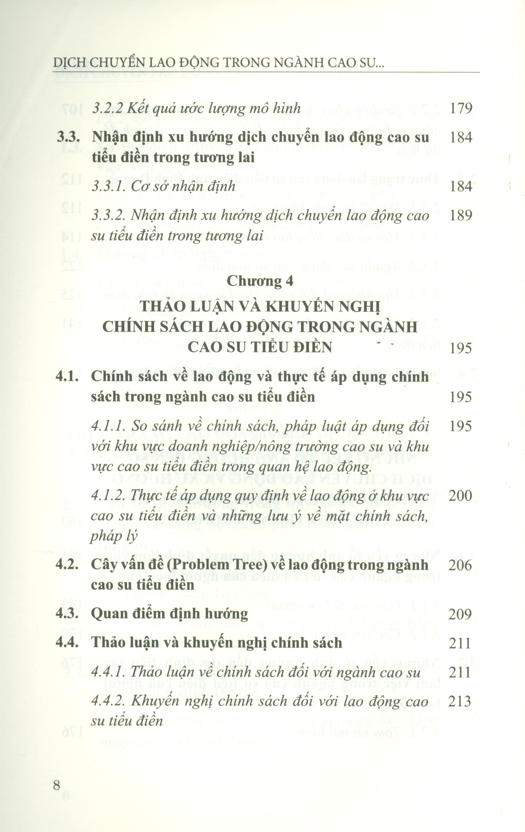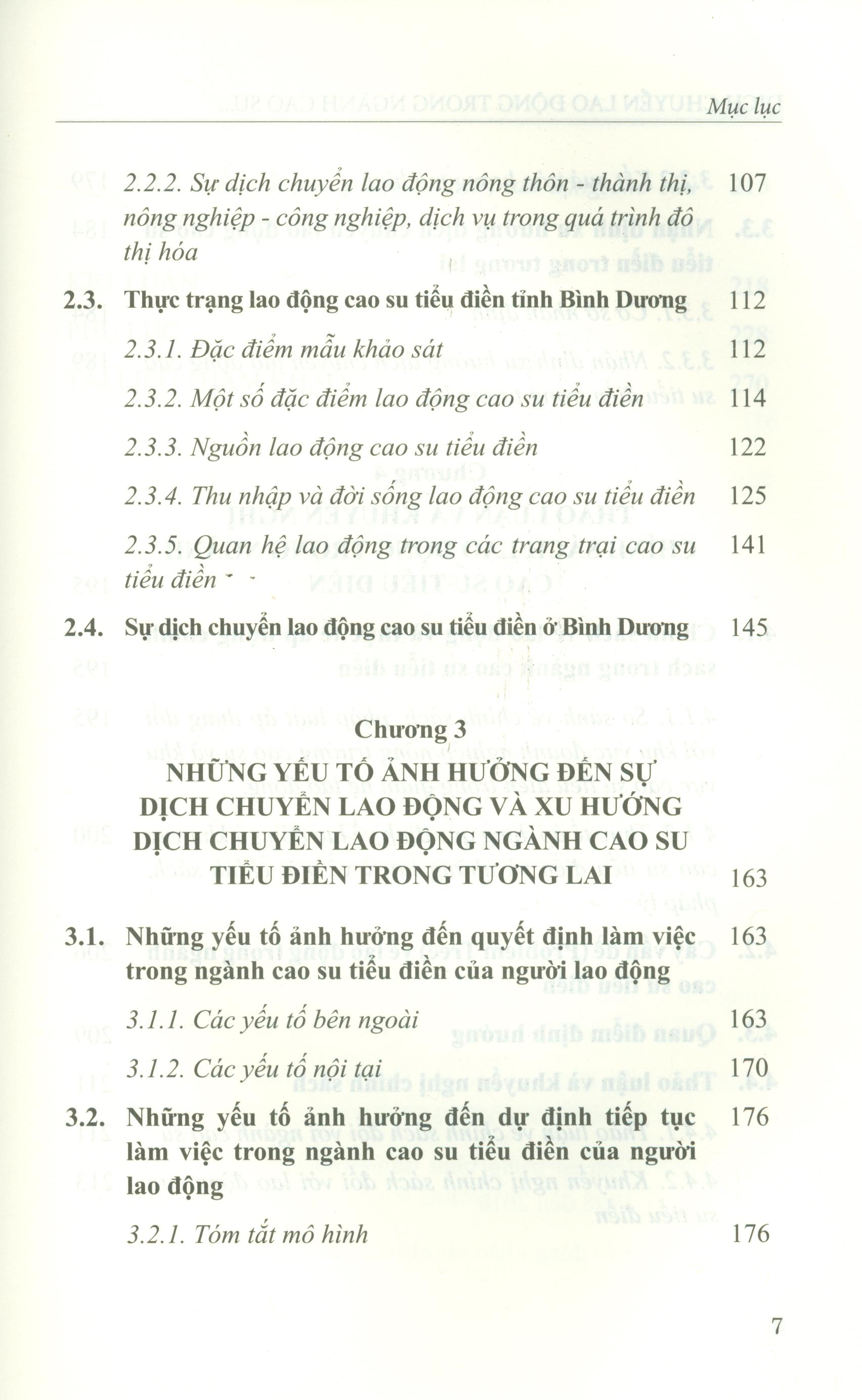 Dịch chuyển lao động luôn gắn liền với quá trình công nghiệp hóa, đô thị hóa và sự phát triển của mỗi quốc gia hay mỗi địa phương. Nội dung cuốn sách cho thấy cùng với tình trạng giá cao su sụt giảm liên tục trong thời gian qua thì sự dịch chuyển lao động đã gây ra tính thiếu ổn định và tạo áp lực thiếu hụt lao động (nhất là lao động trẻ) đối với ngành cao su tiểu điền. Điều này đặt ra cho khu vực cao su tiểu điền nói chung và Bình Dương nói riêng những vấn đề về sự tồn tại và phát triển trong tương lai. Đặc biệt, cuốn sách tập trung phản ánh thực trạng lao động, xu hướng dịch chuyển lao động cao su tiểu điền tại tỉnh Bình Dương trong bối cảnh đô thị hóa cao của tỉnh trong những năm qua và nhận định về xu hướng dịch chuyển lao động cao su tiểu điền trong tương lai. Từ đây, tác giả thảo luận những chính sách chung đối với ngành cao su, đồng thời khuyến nghị chính sách riêng đối với lao động cao su tiểu điền và đề xuất một số giải pháp quản trị lao động cao su tiểu điền.