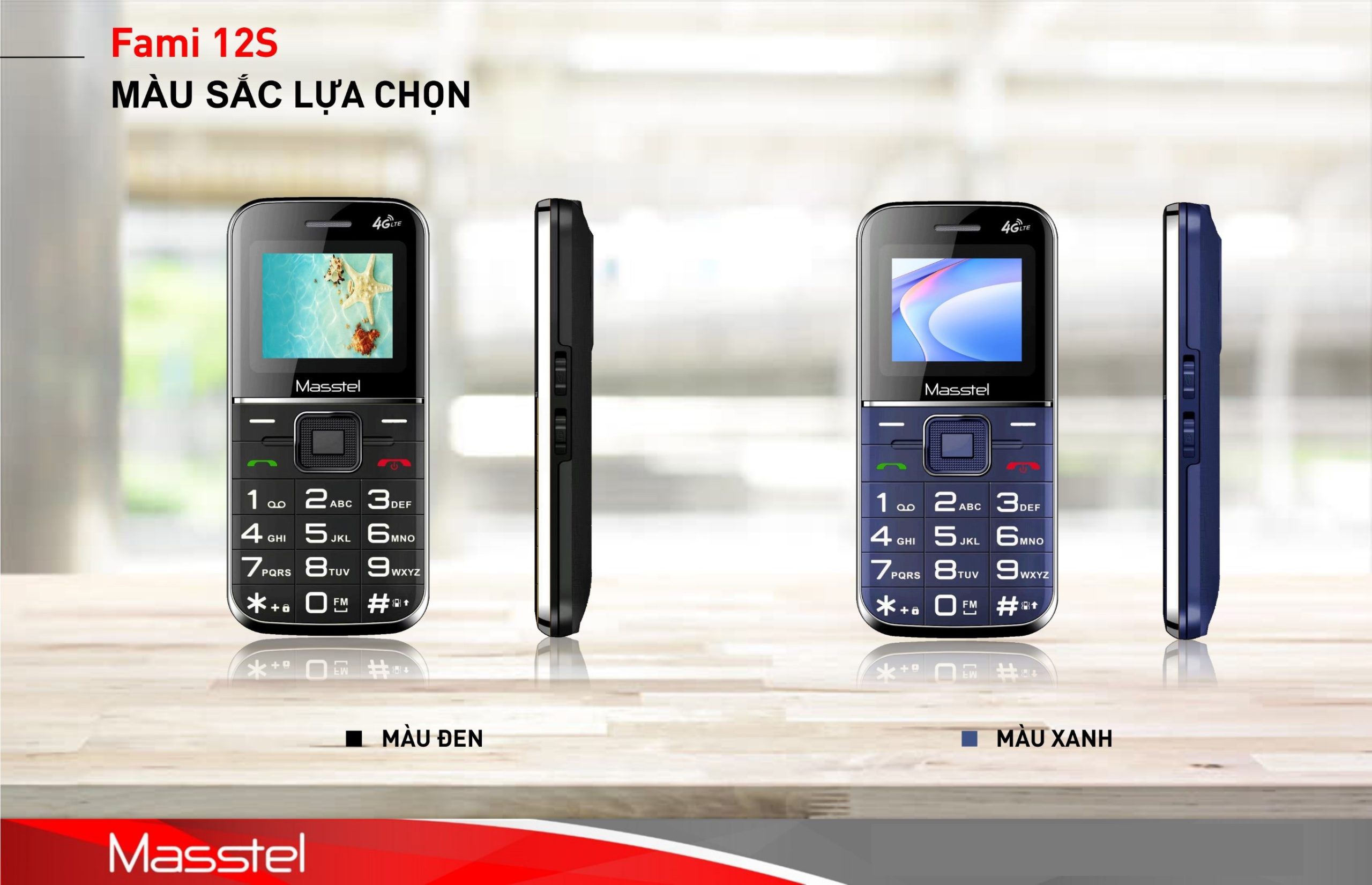 ✨Điện thoại người già Masstel Fami 12S 4G(LTE) , Bàn phím chữ số to, Loa lớn , Máy viền thép chắc chắn - Hàng chính hãng