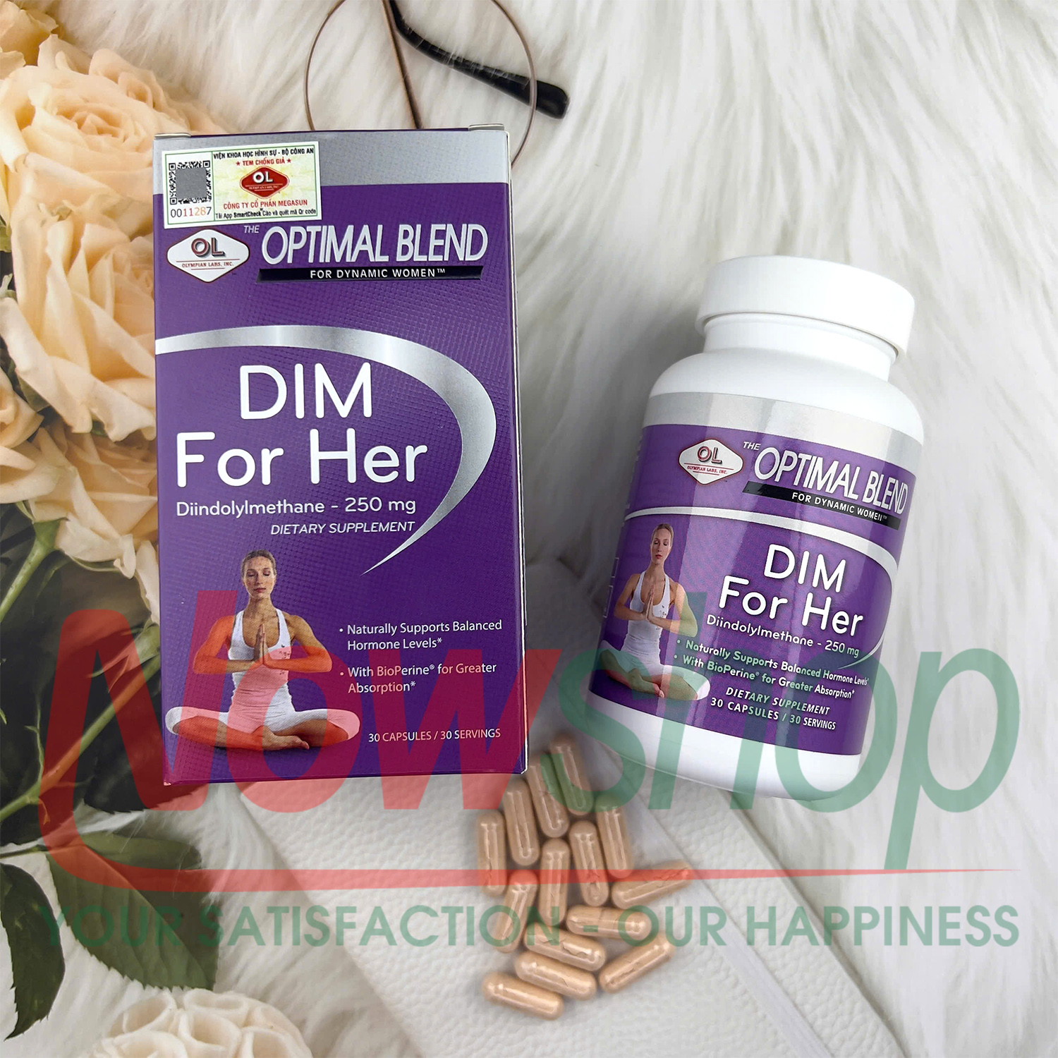 Viên Uống DIM For Her - Cân Bằng Nội Tiết, Giảm Mụn, Đẹp Da Tự Nhiên Hàm lượng DIM 250mg - cao gấp 2-3 lần sản phẩm thông thường Kết hợp BioPerine - giúp hấp