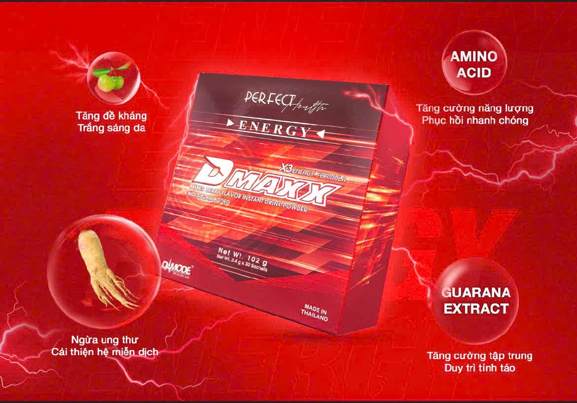 Thức uống năng lượng Dmaxx Energy Formula   Dmaxx energy formula là sản phẩm thức uống năng lượng có chức năng bổ sung năng lượng cho người uống mỗi ngày dưới dạng thức uống hòa