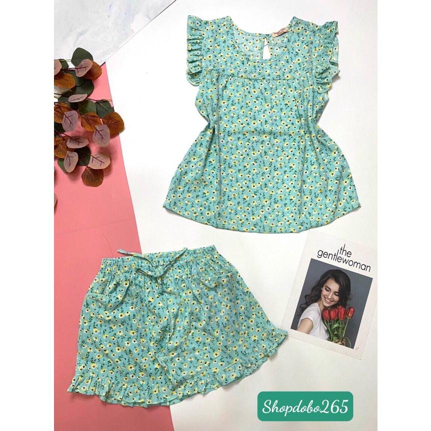 ✨Đồ bộ nữ,đồ ngủ mặc nhà đùi vải lụa mango hoa nhí dễ thương size 45-57kg.