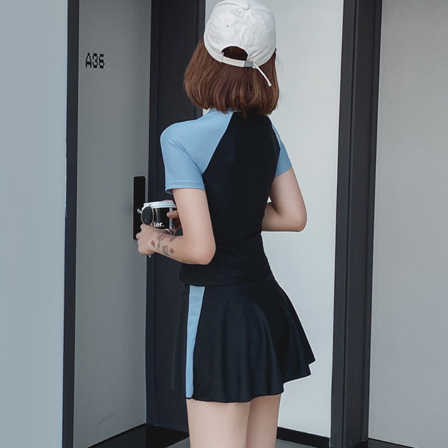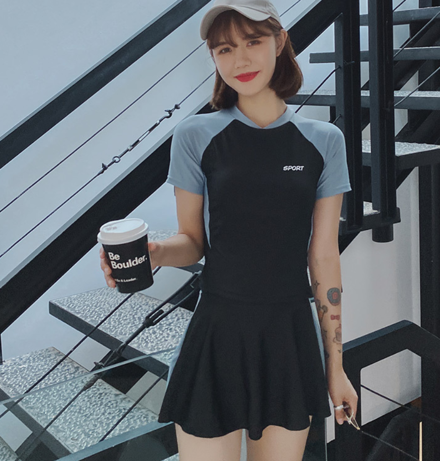 Đồ Bơi Nữ Hai Mảnh Kín Đáo Áo Bơi Tay Ngắn Quần Bơi Dạng Váy