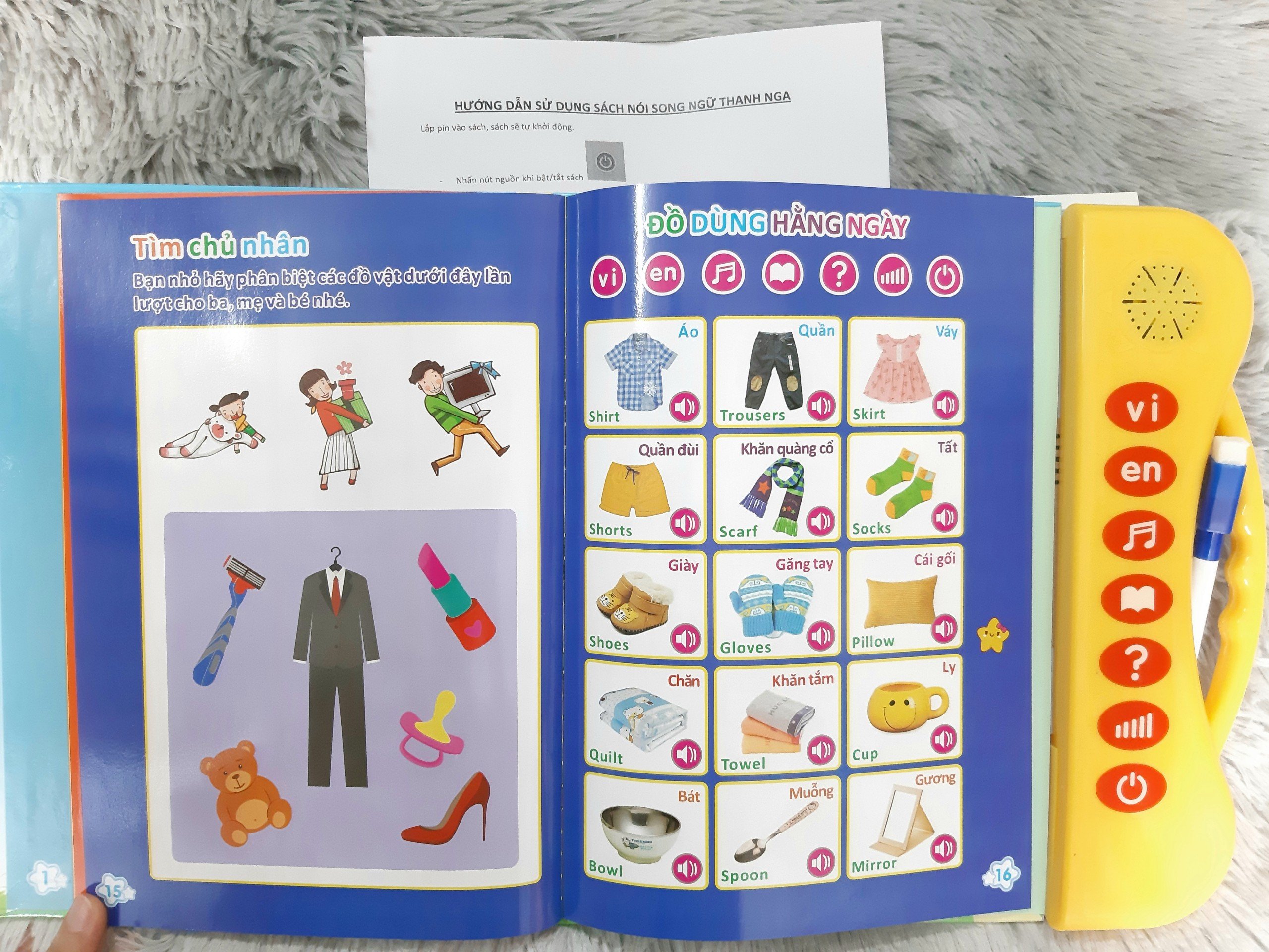 • Bảng nói còn được tích hợp thêm phần trò chơi thú vị với bút mục có đầu xóa được. ĐỒ CHƠI BẢNG NÓI ĐIỆN TỬ SONG NGỮ ANH - VIỆT 24 TRANG thực sự là một người bạn hiểu thấu con muốn gì và giúp trí não con phát triển. Với bảng nói này, bé có thể vừa học vừa chơi mà học rất bổ ích và tiện lợi phải không nào? Lưu ý: Tất cả các sản phẩm gửi đi, shop đều test rất kỹ! Sản phẩm này là tài sản cá nhân được bán bởi Nhà Bán Hàng Cá Nhân và không thuộc đối tượng phải chịu thuế GTGT. Do đó hoá đơn VAT không được cung cấp trong trường hợp này.