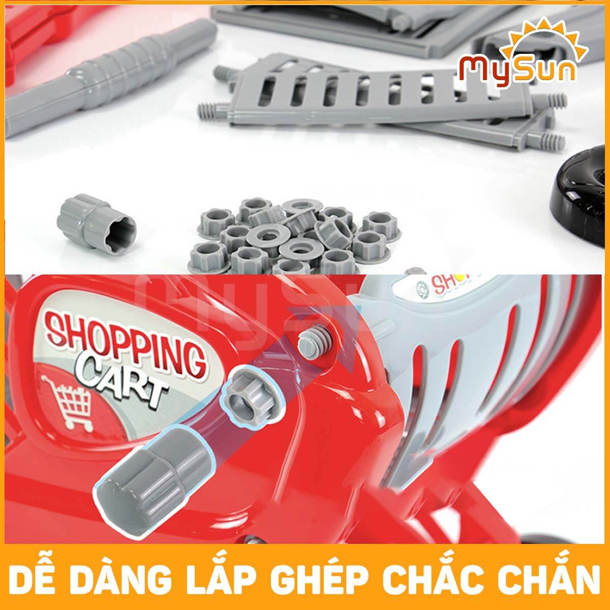 Đồ chơi xe đẩy siêu thị cỡ lớn MySun là món quà ý nghĩa bé yêu nhà bạn. Xe đẩy siêu thị được lắp ráp chắc chắn, bo cong, mài gờ an toàn. Trục bánh xe là chắc chắn, hoạt động ổn định, bền bỉ không lo h...