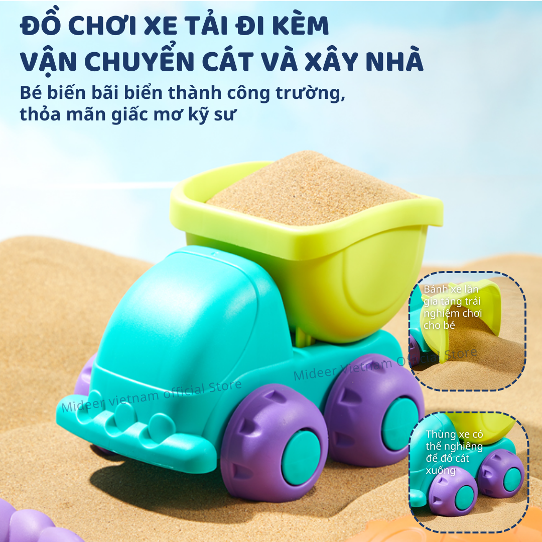 - ĐỒ CHƠI XE TẢI ĐI KÈM - VẬN CHUYỂN CÁT VÀ XÂY NHÀ Bé có thể biến bãi biển thành công trường xây dựng, thỏa mãn giấc mơ kỹ sư của con.