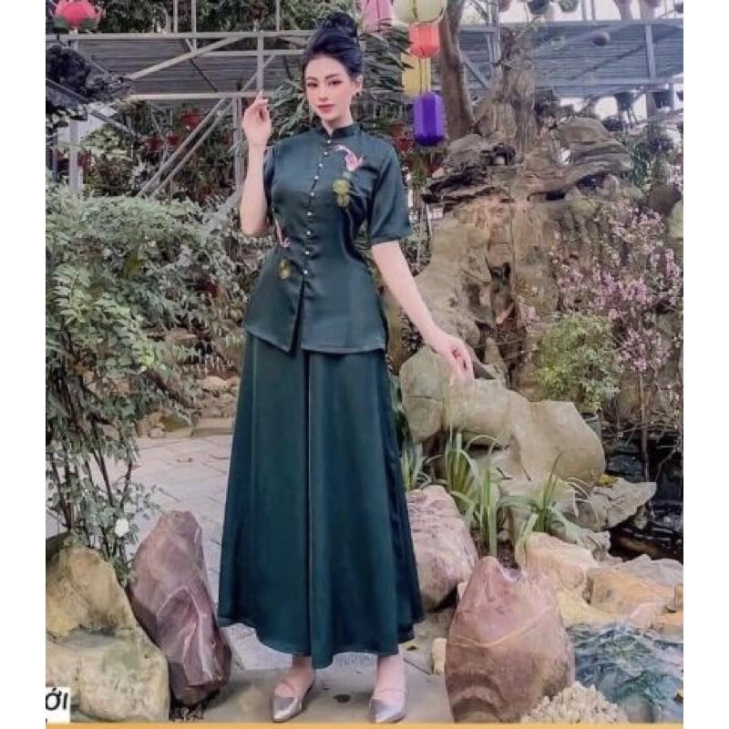 [ FREE SHIP ] Bộ đồ lam đi chùa nữ thêu sen chất liệu đũi thái, Pháp phục lễ chùa cổ tàu phối