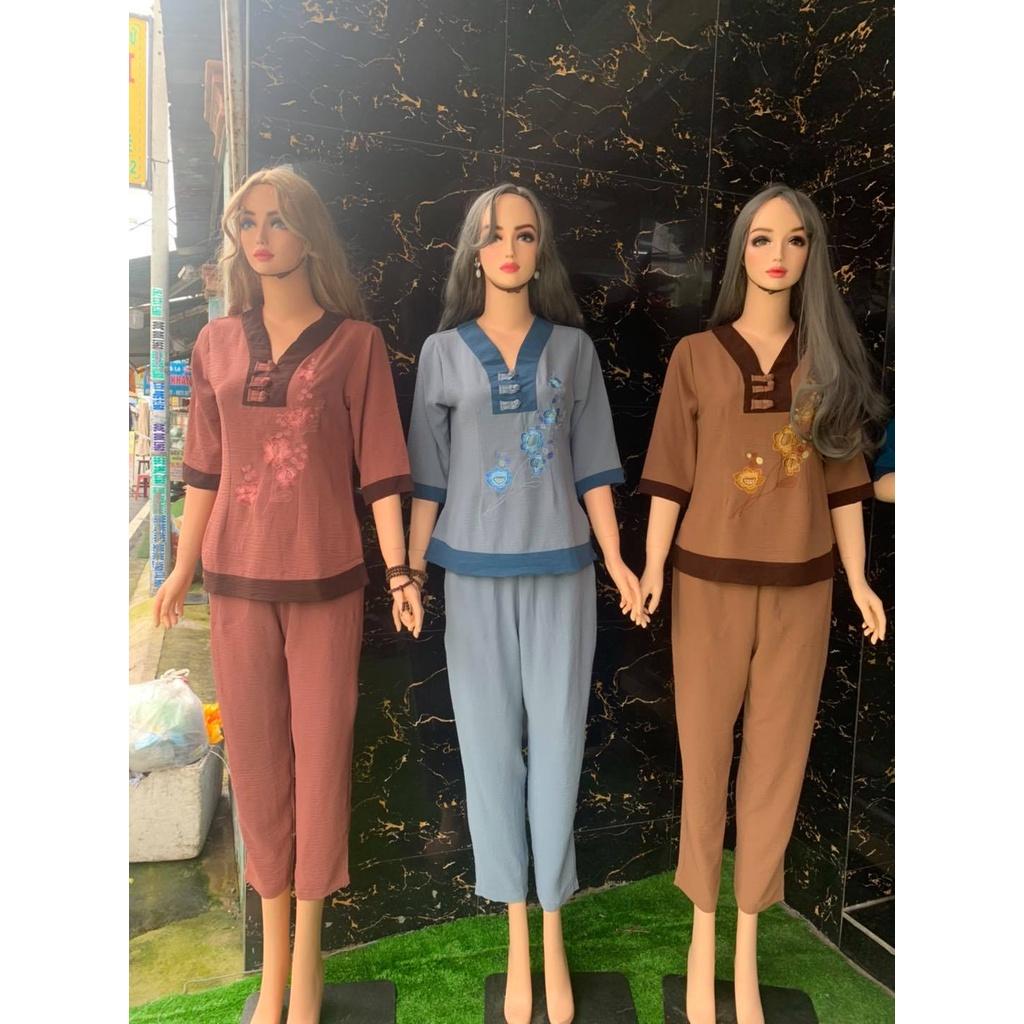 Đồ lam đi chùa đũi nhật thêu mềm mịn thanh lịch #shopcuamy #phapphuc #phapphucdichua #dolamdichuadep