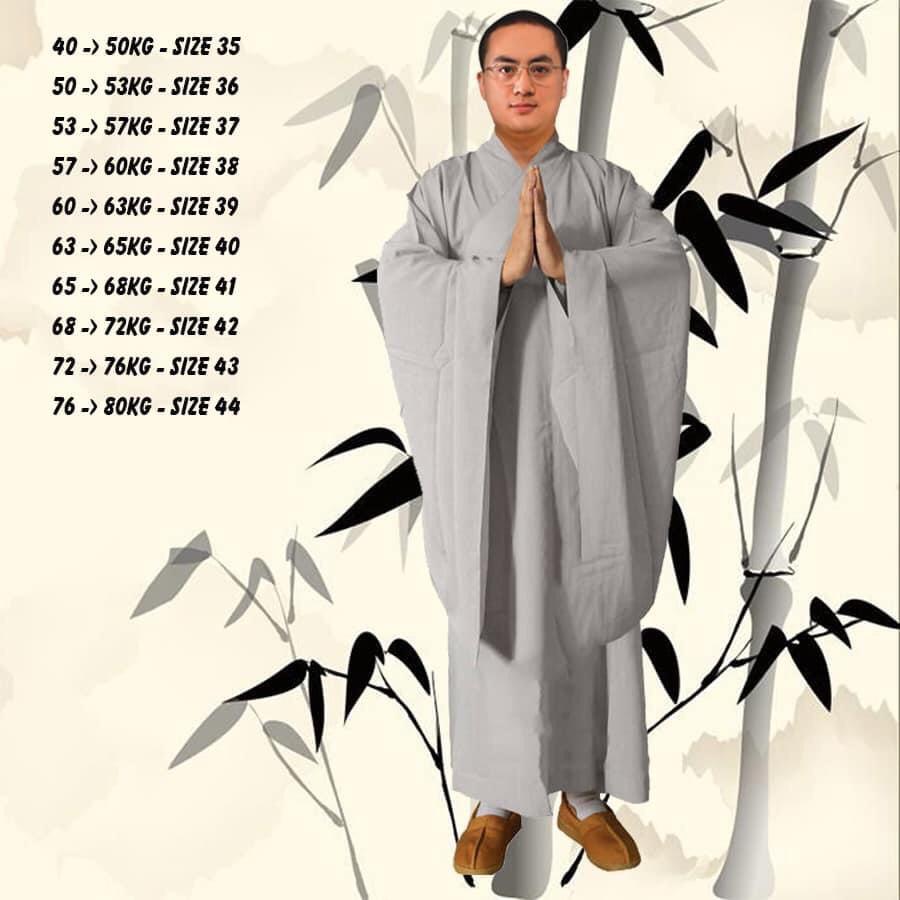 BẢNG SIZE VẢI LỤA CAO CẤP Size 2 dưới 55kg Size 3 56-60kg Size 4 61-65kg ️Size 5 66-70kg Cung cấp sỉ lẻ pháp phục phật giáo Sản phẩm này là tài sản cá nhân