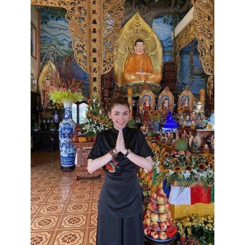 quần áo Phật tử cổ tàu cài chéo - đồ lam đi chùa Sen Hồng - set Phật tử nữ đẹp 0898553583
