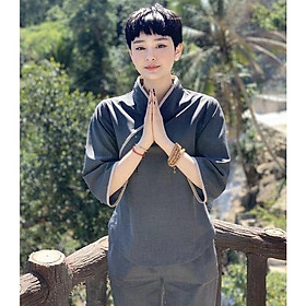 Mẫu áo lam đi chùa đẹp nhất 2020 - Quần áo Phật tử Tâm An QUANAODICHUA.VN