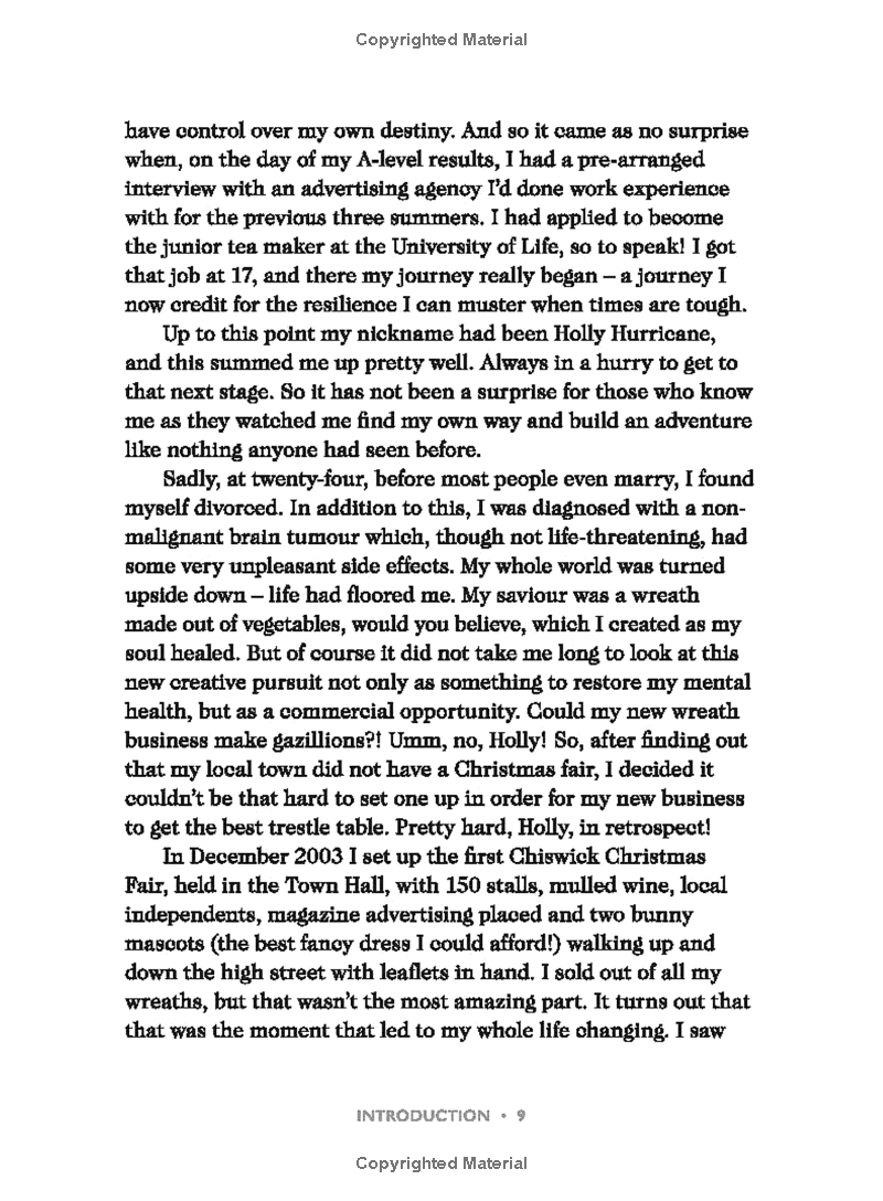 Demystifying the grey world of business, whether you've yet to take your first steps, or find yourself stuck in a rut, this beautiful and vibrant book will allow your dreams to take flight. Holly shares her own story – along with those of acclaimed founders like Sir Richard Branson and Jo Malone CBE – revealing their biggest lessons and proven advice on creating and growing a business. From side hustle to full-time, from defeating your confidence gremlins to creating an empowered community, Holly reveals both the skills and the mindset any founder needs to help their business thrive.